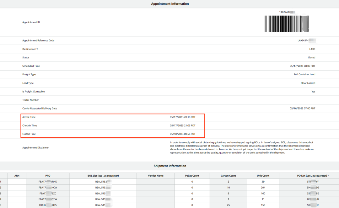 LAX9之所以難送,是因為其爆倉推約刪約常態(tài)化,也是目前送倉排隊時間久的倉庫之一,許多同行已經采取亞馬遜提貨的方式交倉,LAX9院子里堆滿Amazon freight的貨箱待卸貨(如圖3),為保障客戶時效,德速仍堅持自送倉,雖然也遭遇亞馬遜臨時變更預約時間,好在有CULine團隊支持和車隊緊密配合,最終貨柜趕上預約時間按要求送達,客戶在中國時間18日上午就開始反饋有上架。